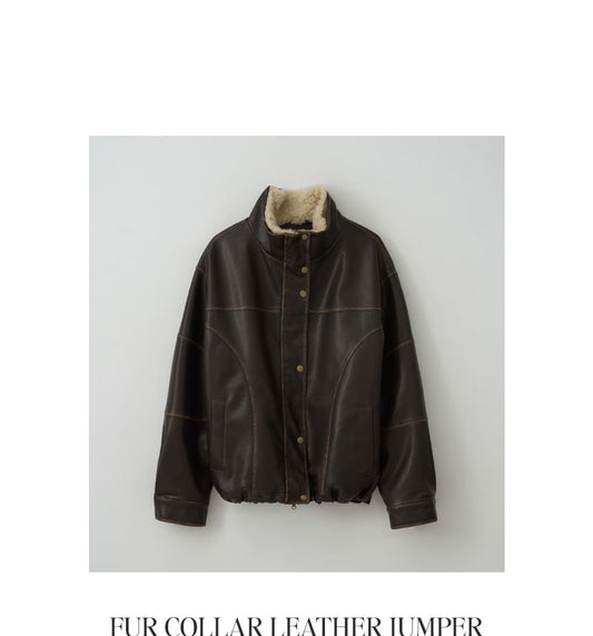 Collared Faux Fur Panel Faux Leather Zip Jacket