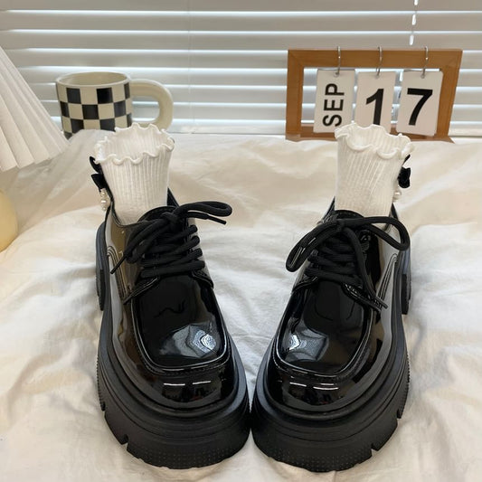 Faux Leather Platform Lace-Up Shoes
