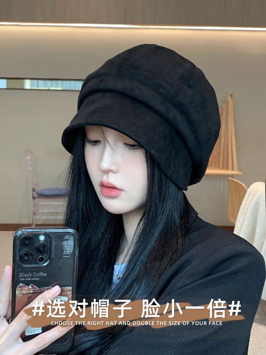 Faux Leather Plain Newsboy Cap