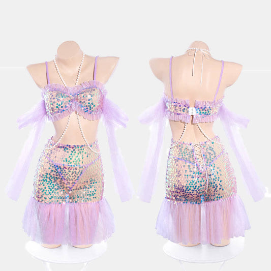 Mermaid Vintage Sequin Pearl Decor Lingerie Set