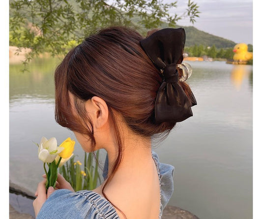Mesh Evening Gown Bow Tube Panel Trumpet Plain