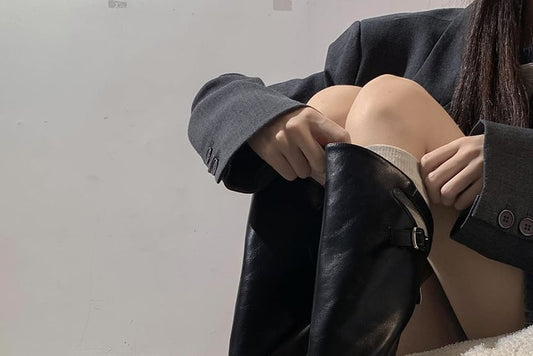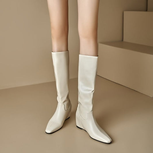 Plain Tall Leather Zip-Up Faux Boots Platform
