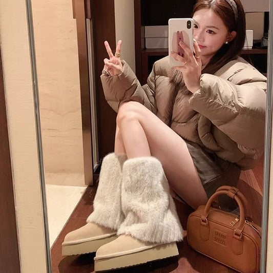 Platform Block Heel Square Toe Fleece Trim Tall Boots