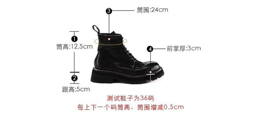 Platform Leather Boots Plain Genuine Short Lace-Up