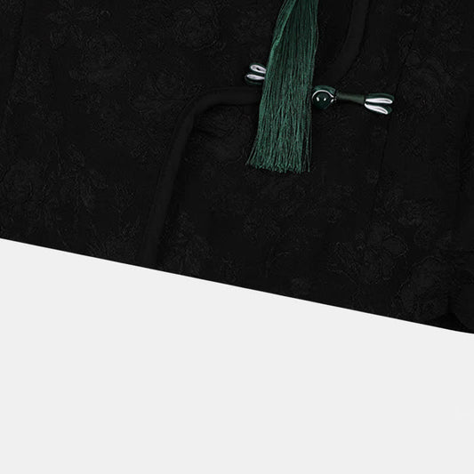 Long Skirt Lapel Floral Embroidery T-Shirt Pocket