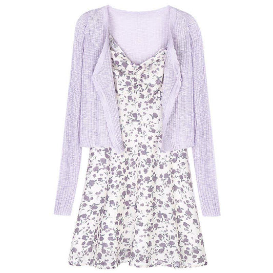 Set Lace Dress Cardigan Gradient Slip Chiffon Flouncing