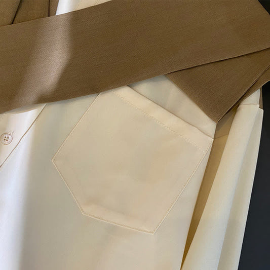 Waist Set Lapel Pocket Casual Shirt Pants High