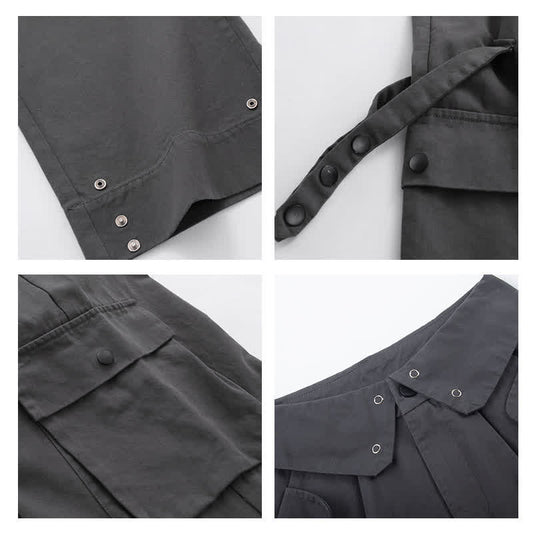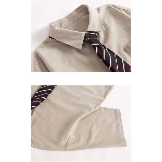 Chic Shorts Tie Pants Chain Cargo Pocket Lapel T-Shirt