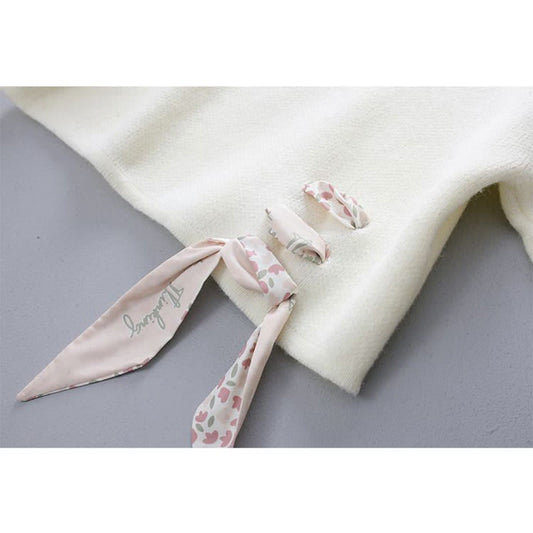 Plush Set Pants Bow Pieces Pleated Fake Two Skirt Sweater
