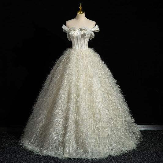 Corset Fringed Gown Accent Strapless Glitter Bow Ball