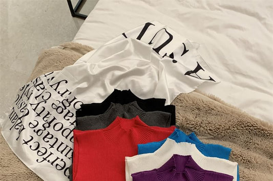 Sleeveless Mock Neck Plain Ribbed Knit Crop Top