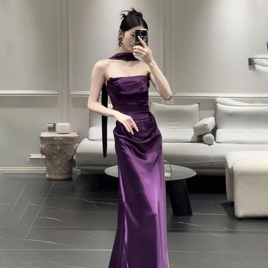 Sleeveless Scarf Neck Plain Satin Maxi Trumpet Wedding Dress