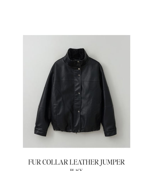 Collared Faux Fur Panel Faux Leather Zip Jacket