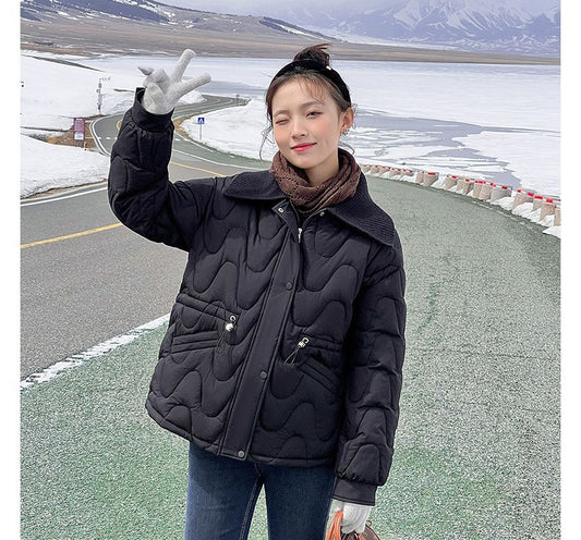 Collar Plain Quilted Zip Jacket