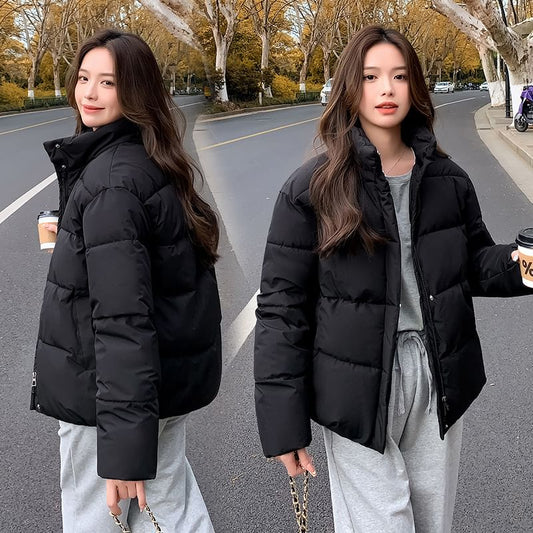 Stand Collar Plain Puffer Jacket