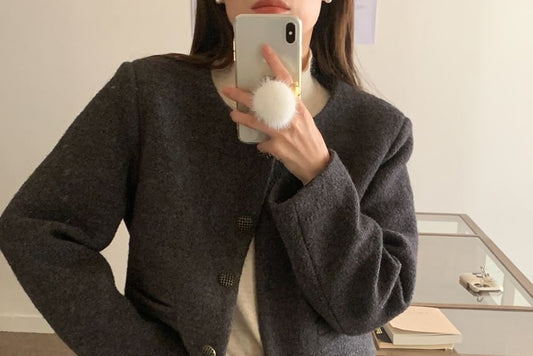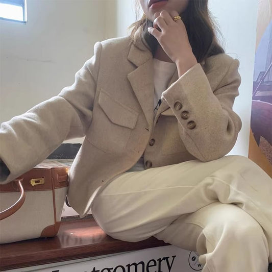 Button-Up Plain Crop Jacket