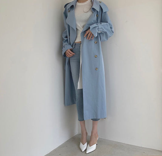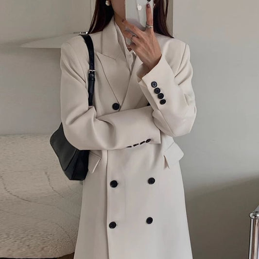 Plain Long Double-Breasted Coat