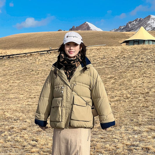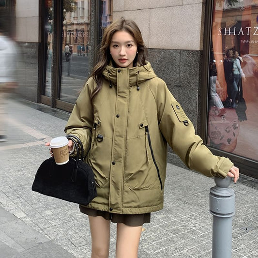 Plain Pocket Detail Puffer Jacket