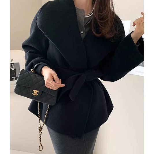 Peak Lapel Plain Midi Double Breasted Coat