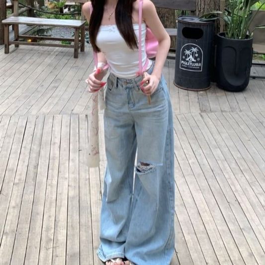 Plus Size Set: Plain Zip Hoodie + High Waist Wide Leg Pants