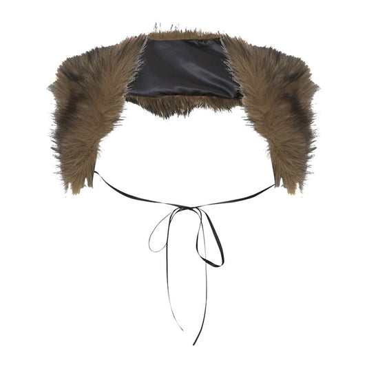 Sleeveless Leopard Print Lace-Up Top / Faux Fur Shrug