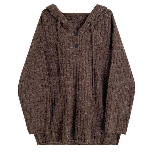 Knit Up Hoodie Mocha Button