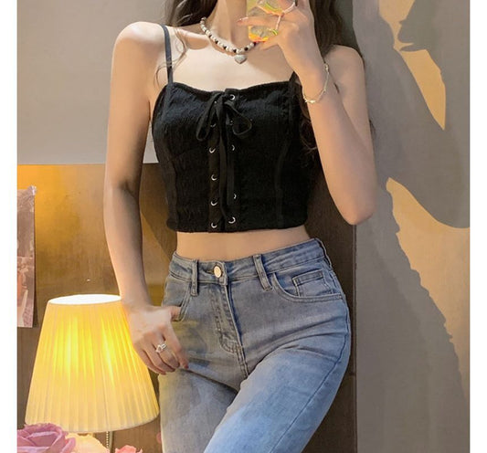 Set: Halter Print Twist Crop Tank Top + High Waist Culottes