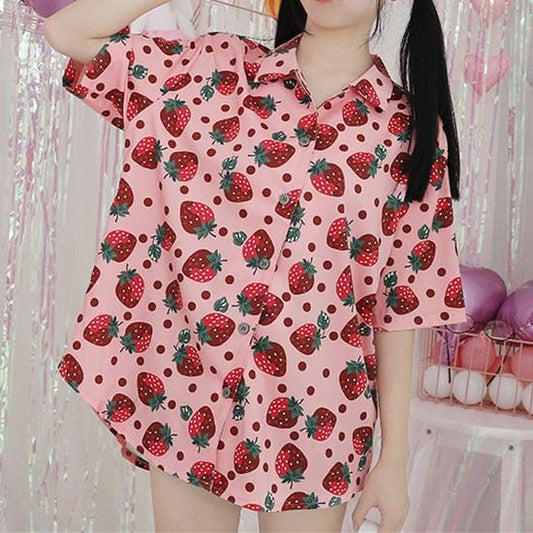 SpreePicky Pink Kawaii Strawberry Blouse S12690