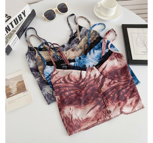 Spaghetti Strap Tie Dye Crop Bustier Top