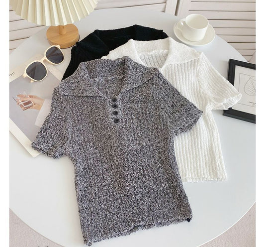 Collared Plain Shirt / V-Neck Sweater Vest / High Rise Plain Mini Pleated Skirt