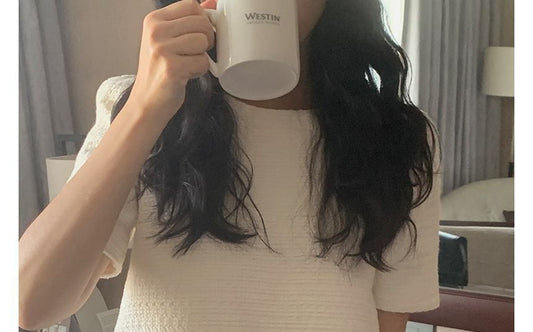 Short-Sleeve Crew Neck Plain Pointelle Knit Top
