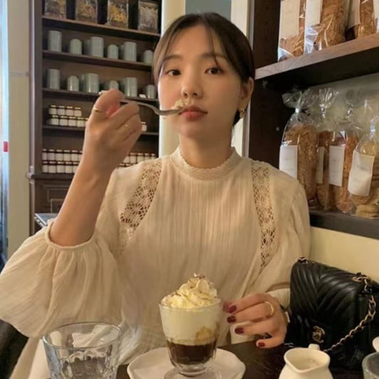 Long-Sleeve V-Neck Lace Cropped Blouse