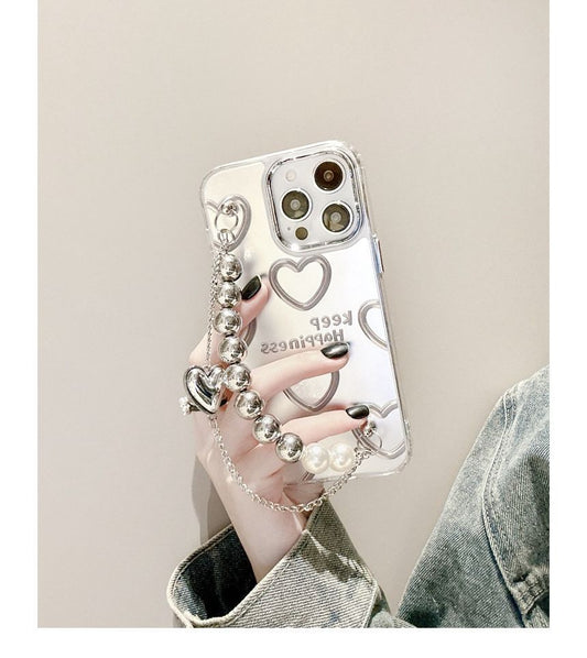 Faux Leather Elephant Charm Faux Pearl Strap Phone Case