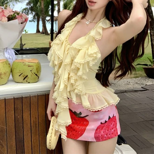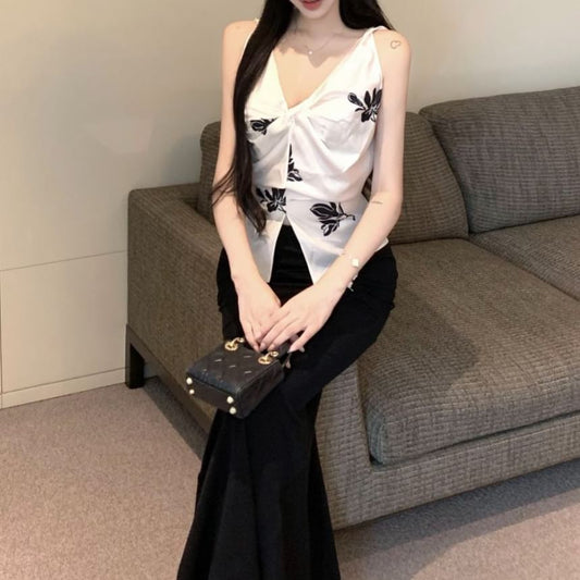 Skirt V-neck Waist Top High Cardigan Halter Cami