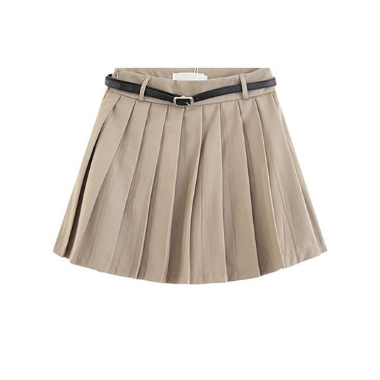 Set: High Waist Pleated Zip Mini A-Line Skirt + Belt EE30