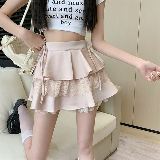 Balletcore High Rise Lace Panel Layered Mini A-Line Skirt EE13