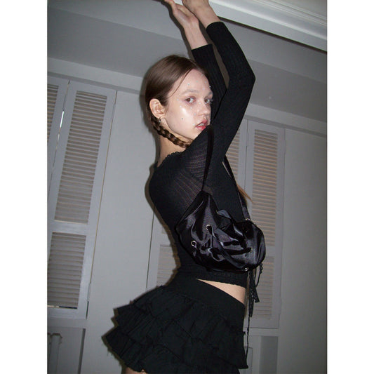 Long-Sleeve Plain Crop Shirt / High Rise Pleated Maxi A-Line Skirt WI30