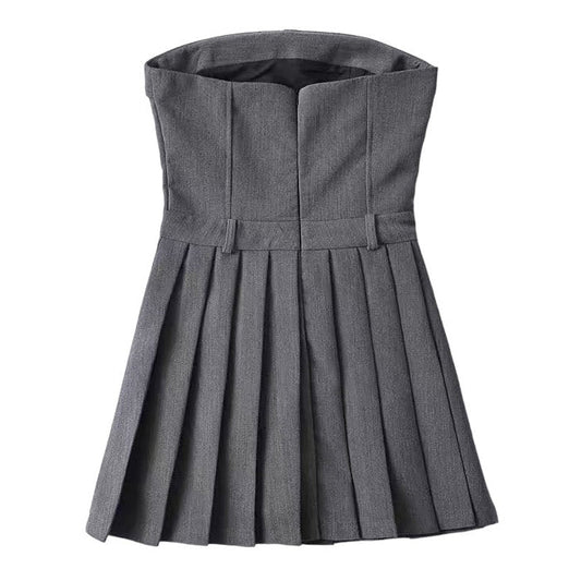 Grey Pleated Mini Dress