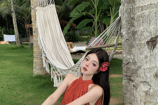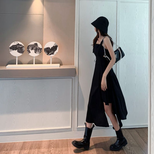 Spaghetti Strap Plain Open Back Midi A-Line Sundress