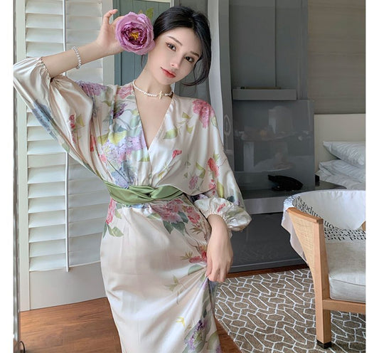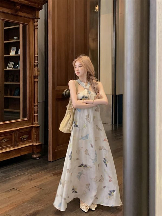 Set: Spaghetti Strap Floral Hanfu Maxi A