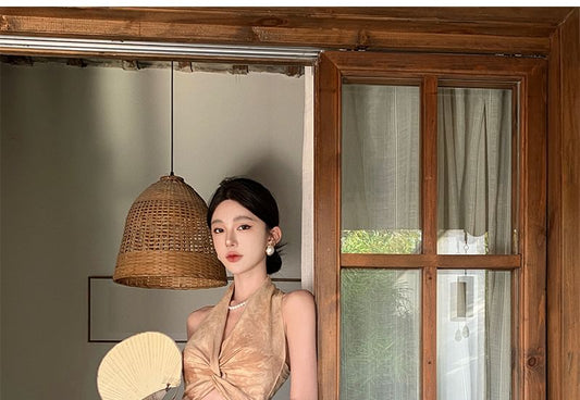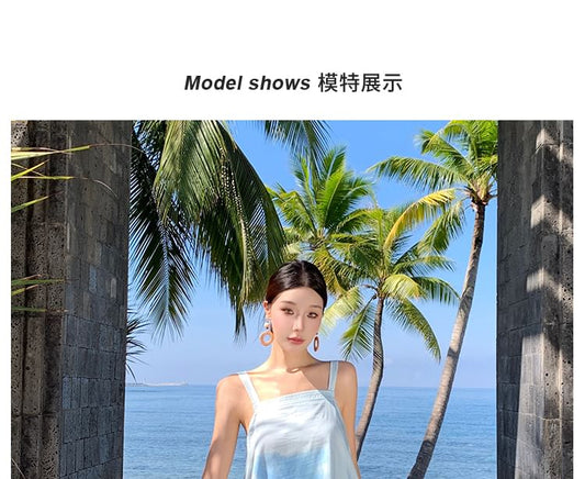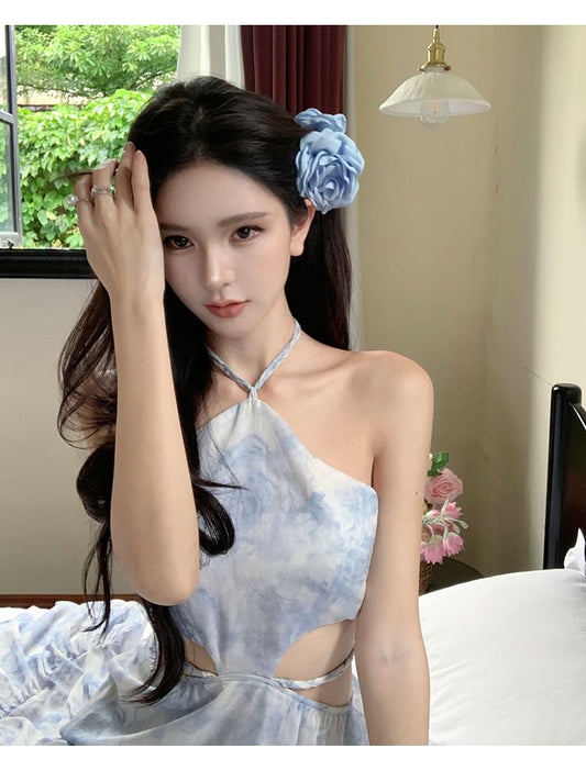 Halter Tie Dye Asymmetrical Open Back Midi A