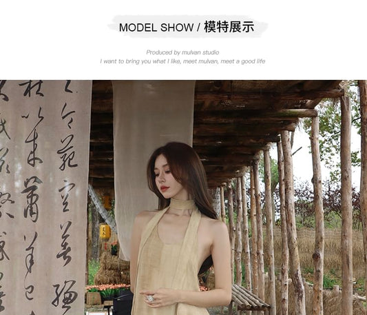 Sleeveless Scoop Neck Tie Neck Bodycon Maxi Dress