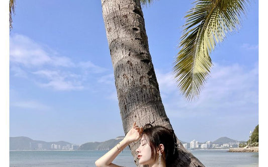 Spaghetti Strap Leaf Print Front-Slit Midi A-Line Dress