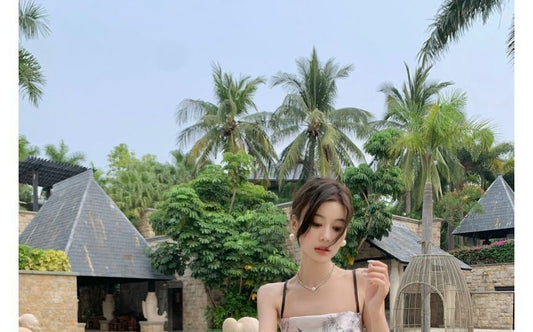 Spaghetti Strap Flora Open Back Midi A-Line Dress