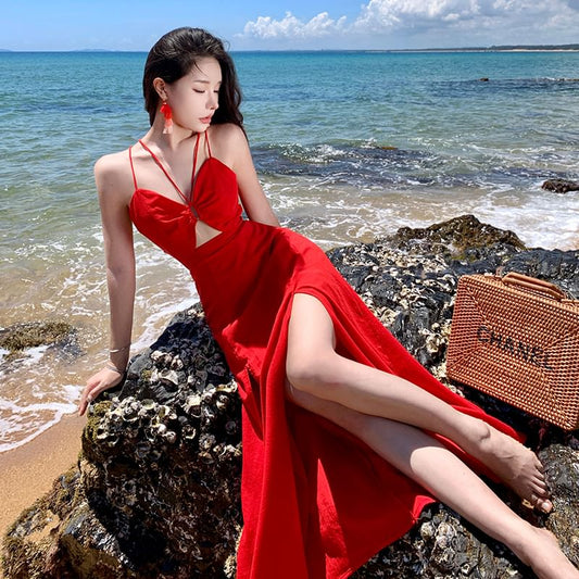Spaghetti Strap Plain Open Back Maxi Mermaid Dress