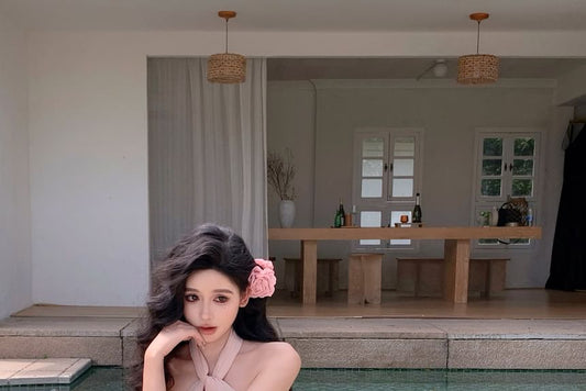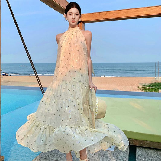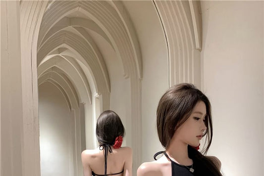Halter Floral Open Back Cutout Maxi Bodycon Dress