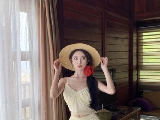 Set: Plain Fringed Crop Cami Top + Elastic Waist Culottes