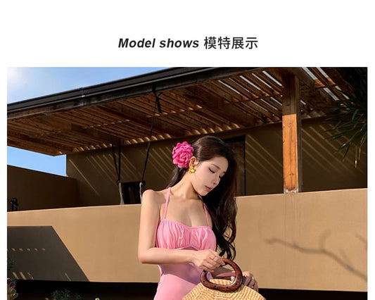Spaghetti Strap Plain Ruffle Trim Maxi A