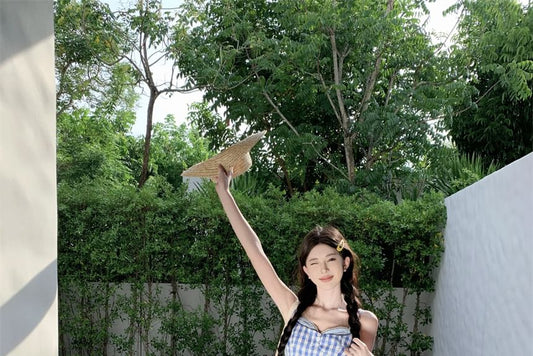 Set: Plaid Crop Cami Top + High Waist Midi A
