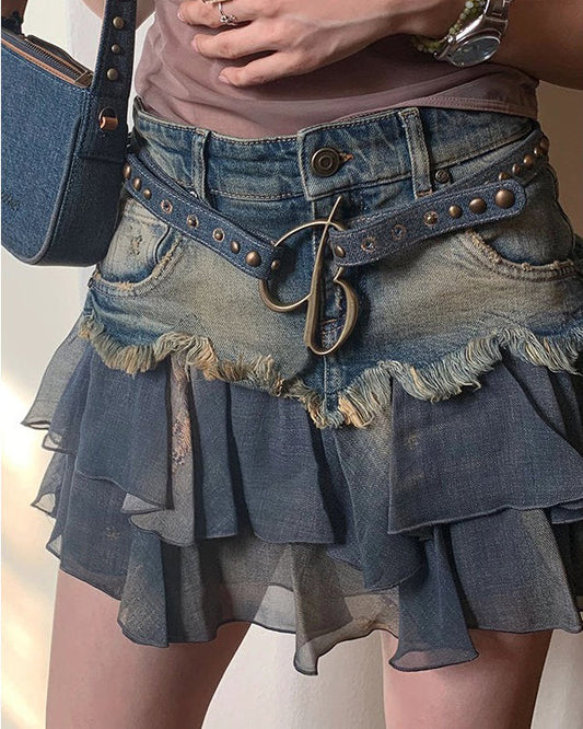 Y2K Aesthetic Denim Ruffled Skirt